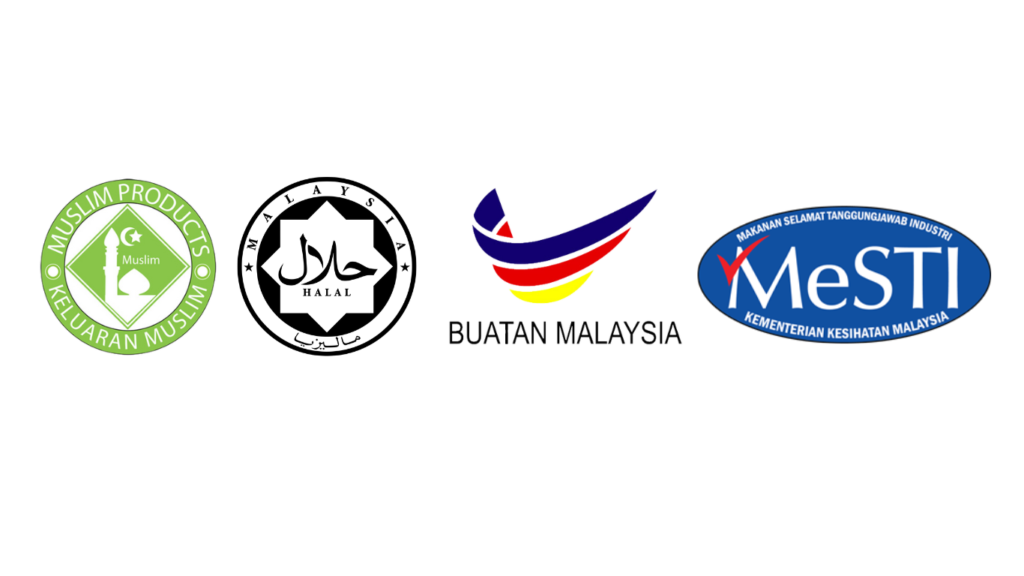 Produk ini telah diiktiraf dengan logo Halal dan MeSTI, memastikan ia bersih, selamat, dan sesuai untuk semua pengguna.